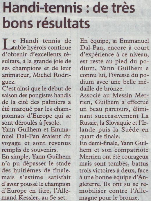 8ème OPEN DE TENNIS DE TABLE DE LA VILLE D'HYERES